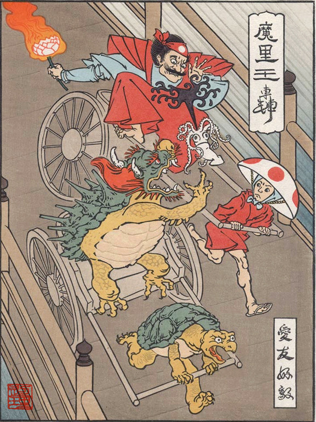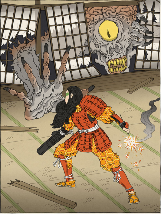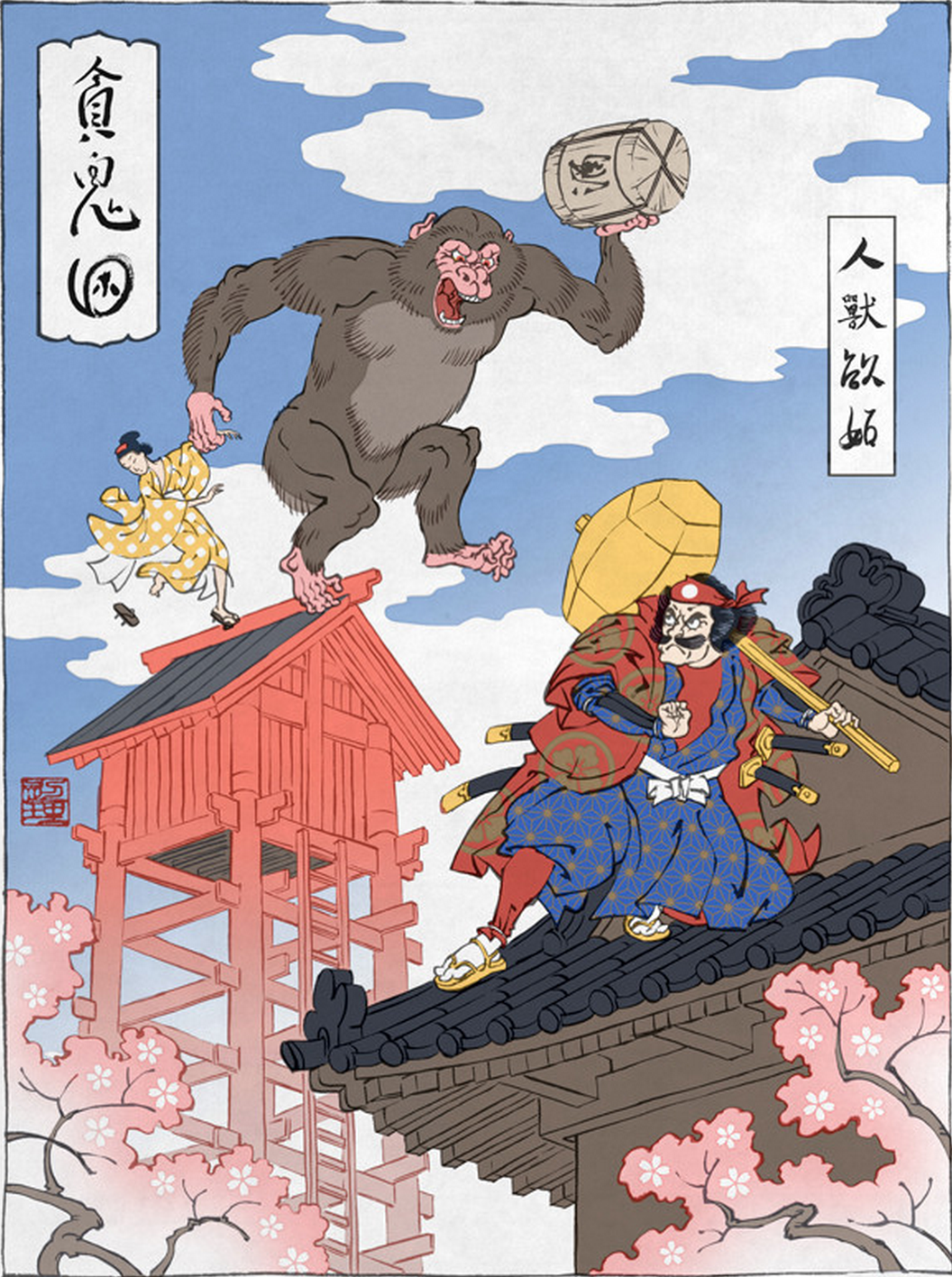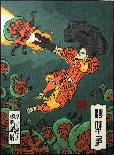 Mastering the art of Ukiyo-e is said to take decades and to produce a single print is a rather time consuming process – compared to more conventional methods nowadays, a lot more costly, too. These aspects could be one of the reasons, why new blood to rejuvenate this traditional style of printing in some areas seems to lack. Our hasty world appears to be even more transient and ephemeral as ever before. People are in for the short-lived distractions, rather consumers than creators. Each art form has then to rely on devoted individuals and striking ideas to keep it alive or to be re-discovered. Although Ukiyo-e has its fervent admirers and collectors, a new breeze in the trade had been missing for decades. A project that took forms in 2012, however, brought modern appeal and a new audience to the Ukiyo-e genre. Illustrator JED HENRY and DAVE BULL, traditional woodblock printmaker stationed in Tokyo, teamed up for a groundbreaking venture by the name UKIYO-E HEROES that was backed by a KICKSTARTER campaign, which received an overwhelming support. Ukiyo-e Heroes, is a spectacular picture collection of fine woodblock and Giclée prints of popular video game characters, beautifully recreated in a medieval setting and designed in this traditional art form by these two artists. According to Jed Henry (initiator also of the fighting RPG game EDO SUPERSTAR), game characters as they have been created in Japan are by implication a product of the rich inherited culture of the country and thus fuse naturally in this creative project. The success of the project has proved him right.